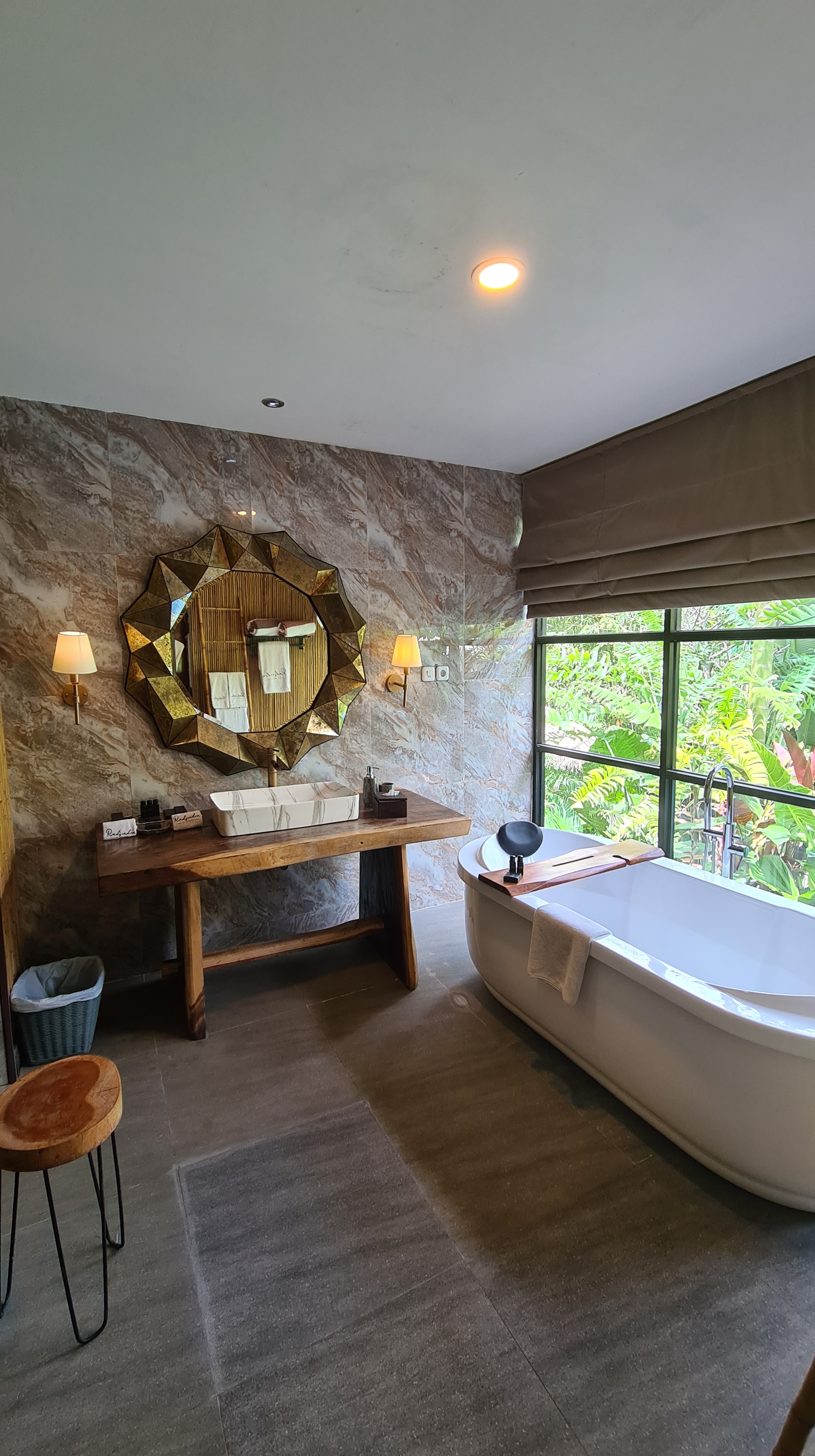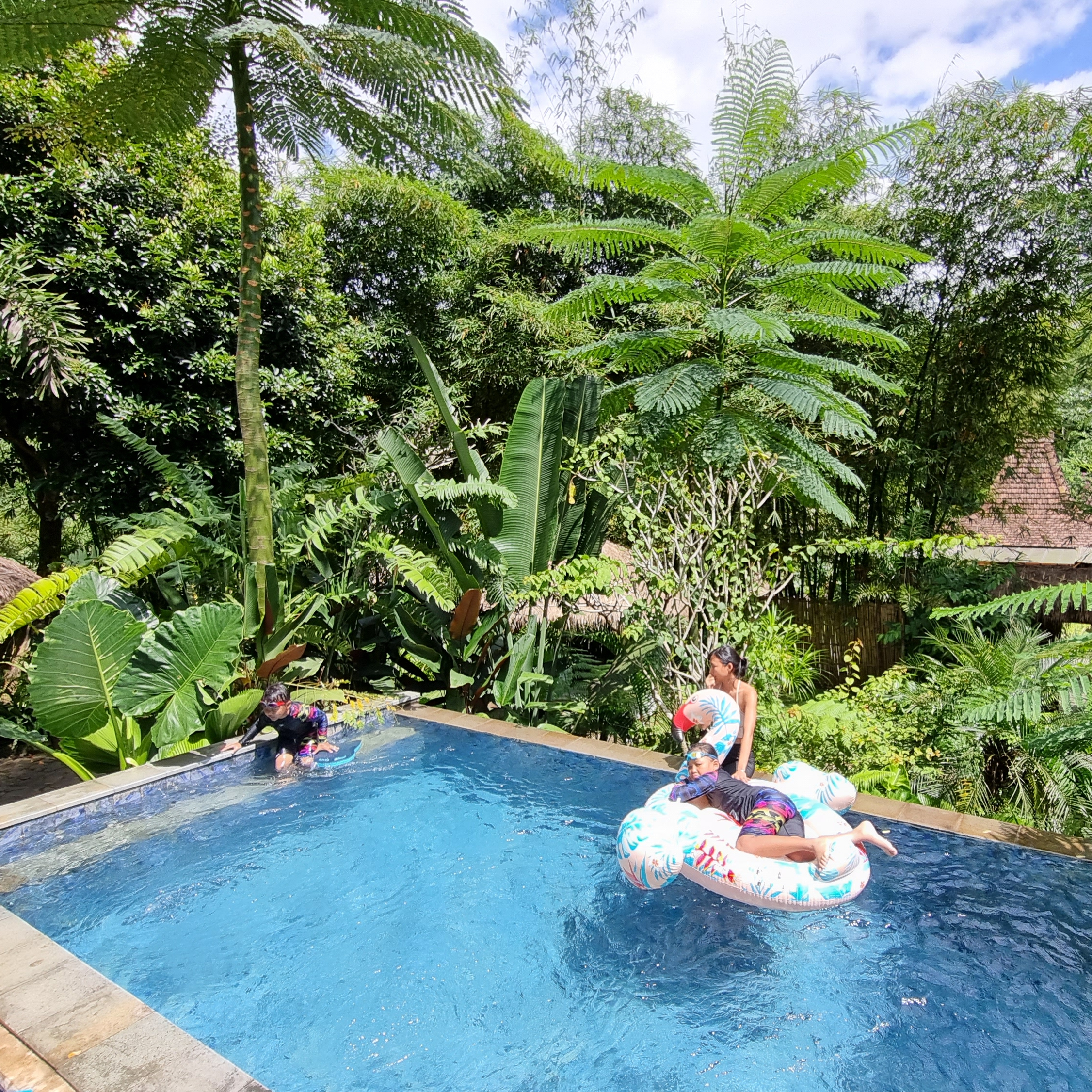 Kita pilih kamar Ayodya, karena cuma ini yg 2 kamar. Kamar mandinya 2 di dalam kamar masing-masing, ada kolam renang di area resort nya juga, kalau bosen bisa berenang di cafe deket lobi. Mau baca juga banyak spot seru, biarin anak2 berenang kita di saung yg agak di bawah bisa, ada tempat makan BBQ an juga bisa, atau di teras sambil liatin anak-anak pun bisa.