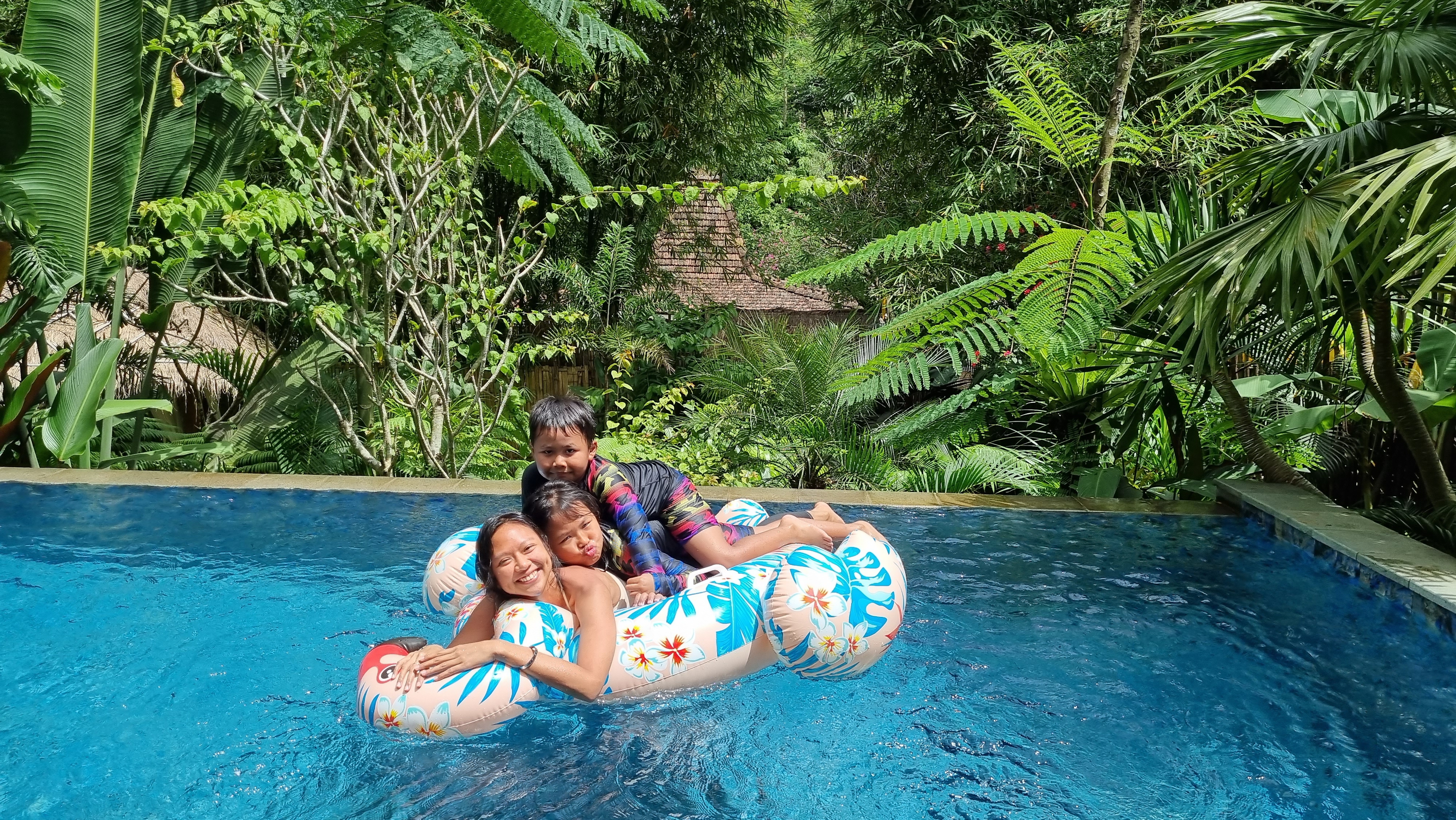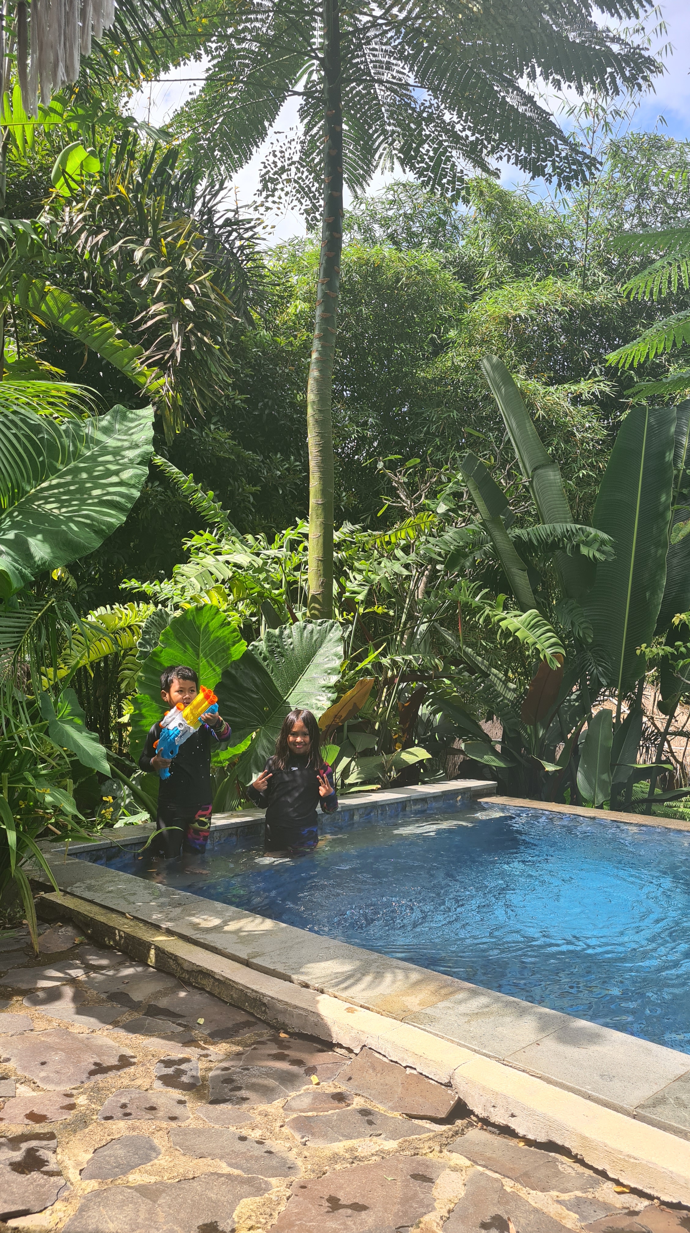 Akhir-akhir ini gw emang agak ga seneng sama konsep surprise karena udah terlalu banyak surprise di kerjaan dengan banyaknya drama, jadi pas ulang tahun ini emang bener-bener cuma pengen matiin handphone dan menjauh dari laptop. Jadi sengaja ngajak anak-anak dan suami ke Bogor aja ga jauh-jauh, untuk staycation sebentar aja 2 malem. tempatnya di Radjendra Resort ga jauh dari pintu tol.