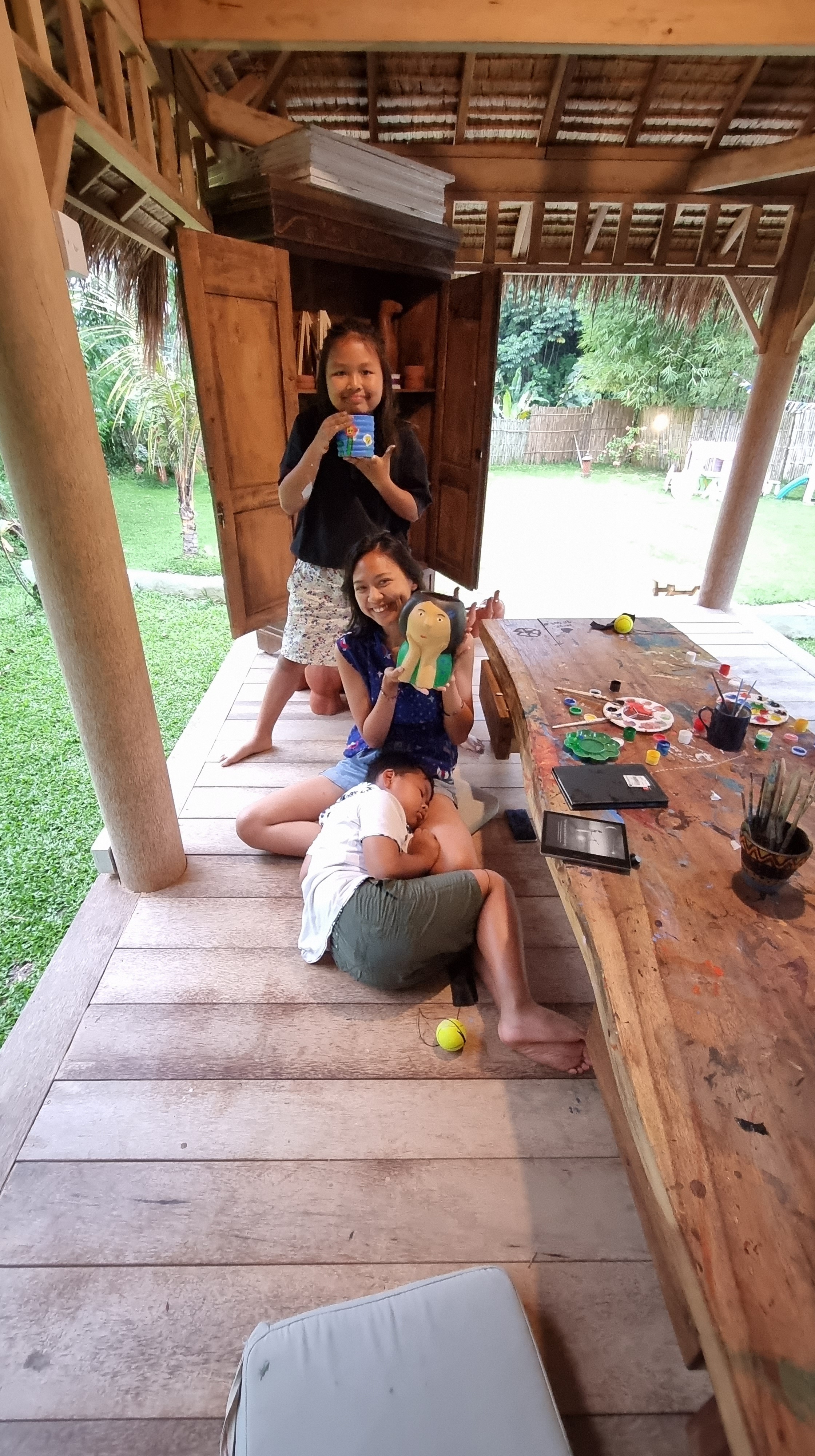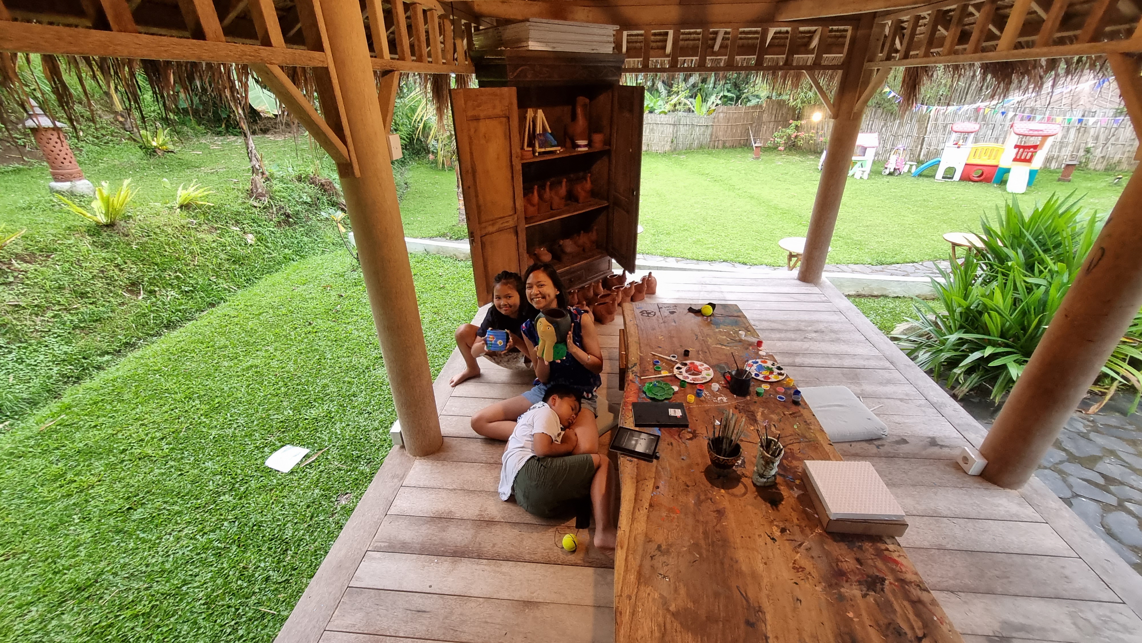 seru-seruan main di playground dan melukis pot di saung sore-sore, super seru. Anak-anak bebas gawai pokoknya.