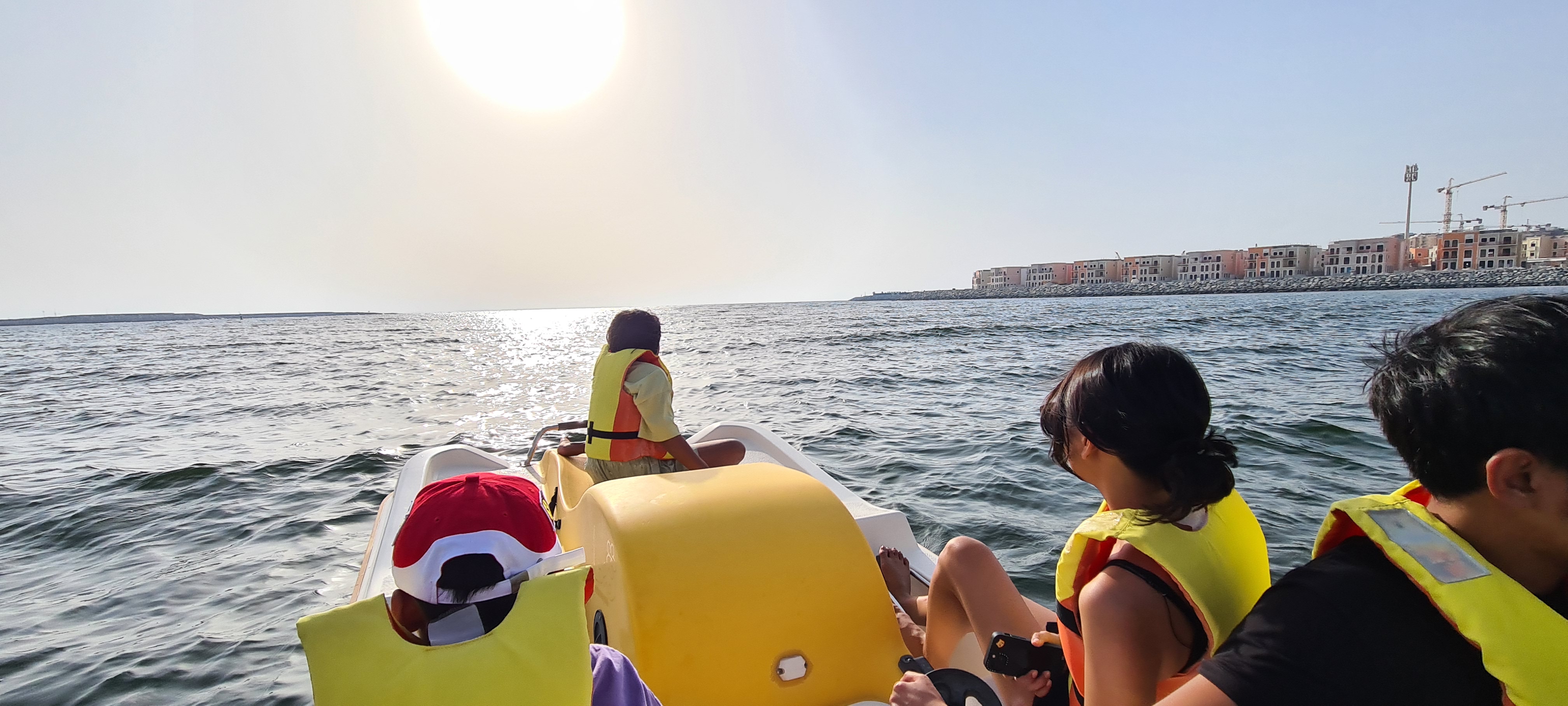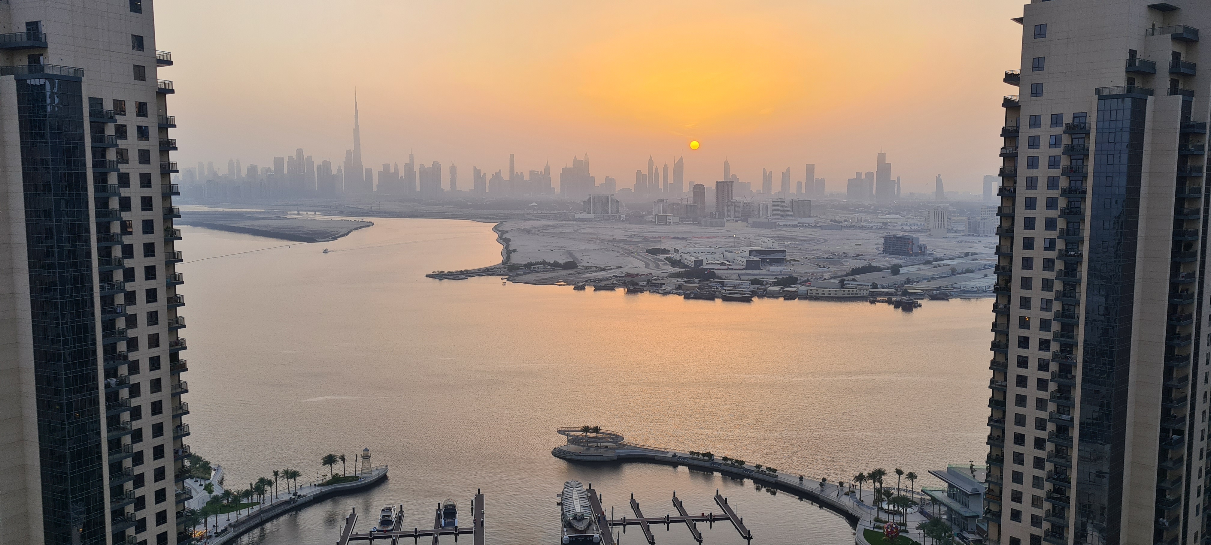 - Matahari terbenam di Jumeirah, Dubai 2022. Pertama kalinya kita ke UAE, tertunda 3 tahun nengokin adik yang tinggal di sana karena pandemi. Kita sempet tinggal di area Jumeirah dan pemandangan balkonnya langsung ke port. Tapi yang seru memang pas kita lagi di pantai, karena baru sadar, matahari terbenam di Dubai ga pernah sampe ke garis batas laut dan langit, mungkin karena pasir2nya yang bikin mataharinya keburu hilang sebelum posisinya turun. Seru juga kita sambil naik kapal yang di kayuh kaya sepeda rame-rame. Perlu banget diulang 🙂