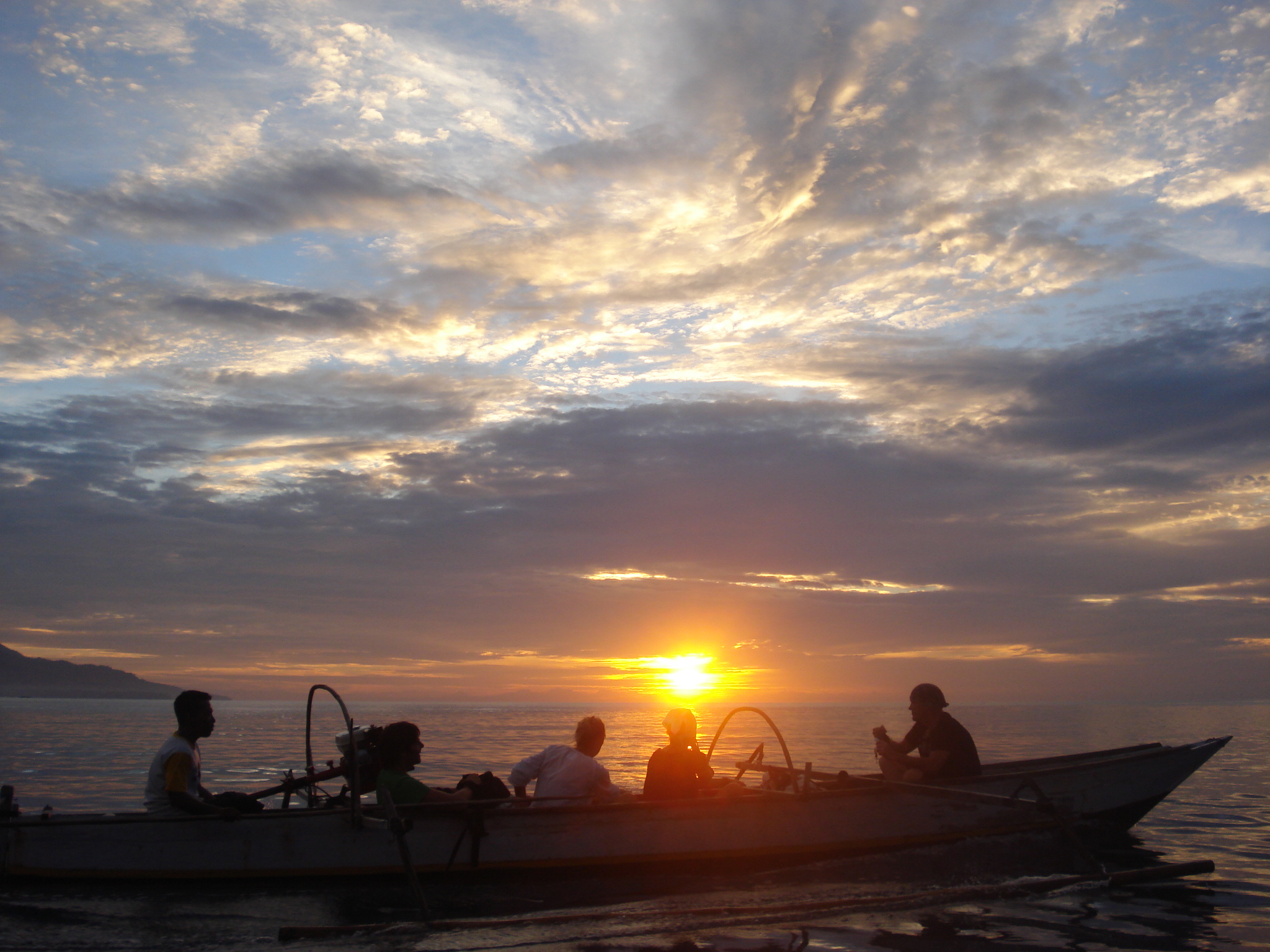- Matahari terbenam di Tanjung Ampana, Sulawesi Tengah, 2010. Berhasil jadi profile picture email terlama sampe sekarang, dan setiap lihat fotonya bener2 bikin gw senyum dan tenang. Sunset ini special karena gw nikmatinnya dari atas kapal, bukan kapal mewah, kapal nelayan biasa, gw cukup inget momennya gw ber-empat sama adhadi, bang john dan bapak nelayan di kapal, ga ada satupun yang ga fokus ngeliat sunsetnya. Efek suara air dengan sedikit ombak juga mungkin berperan bikin hati gw super tenang. Tapi sejujurnya di trip lihat sunset ini klimaksnya bukan di situ, haha. Setelah sunset tentu kita tahu bahwa langit akan jadi gelap ya, kami di atas kapal kecil dengan motor ini sebenernya mau jalan menuju area api alam di pulau ga jauh dari tanjung ampana. Momennya malem supaya kelihatan jelas api biru keluar dari tanah hanya dengan cara kita serok sedikit permukaannya. Takjubnya bukan main, warga sini pasti seneng bisa masak tanpa arang dan ga perlu kompor gas. Momen pulang dari pulau inilah horornya dimulai, gw ga akan lupa betapa gelapnya malam hari di tengah laut Sulawesi. Kami melanjutkan perjalanan kembali dengan kapal bermodalkan lampu minyak, pengalaman bapak nelayan, dan rasi bintang utara sebagai petunjuk. “Mba lihat bintang yg paling terang itu? Nah itu bintang utara. Kalau tersesat pakai dia buat jadi penunjuk arah” ujar bapak nelayan. Takjub berlipat ganda juga karena bintang bermunculan semakin banyak semakin malam dan betapa terangnya bintang utara sampai bisa jadi pengganti google maps. Berakhir dengan sampai di penginapan dengan selamat, tapi moral of the story nya adalah there is no such a thing as a free lunch. Perjuangan banget dapetin momen sunrise secantik itu tambah lagi lihat api alam, tapi perjalanan yg di tempuh memang bikin deg2an setengah mati.