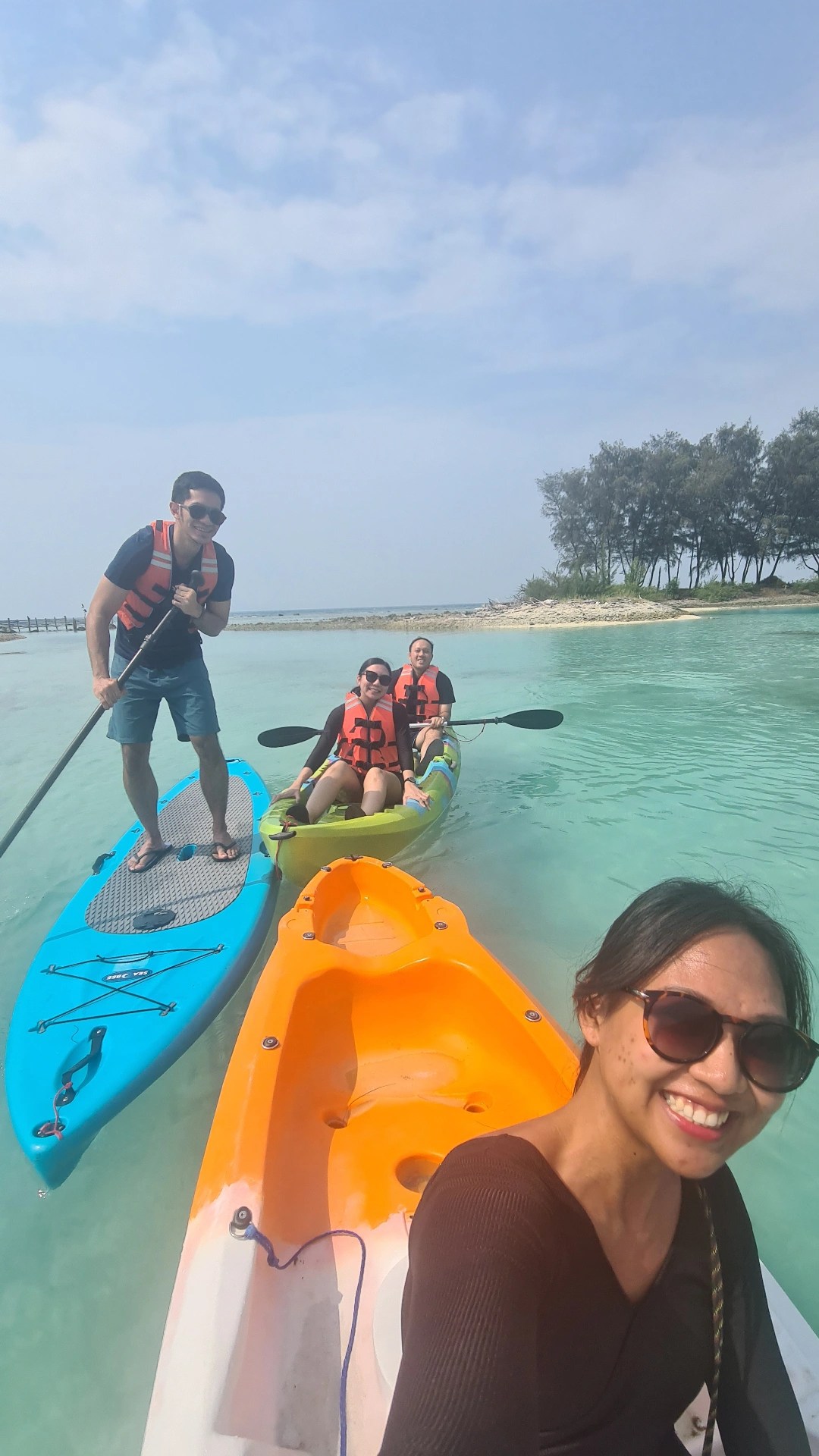 Karena pulaunya kecil pantainya pun bisa pilih mau yang mana sepanjang jalan ada, tinggal nyebur. Ada 1 area yang didedikasikan untuk kayak dan paddleboard. Kalau pada mau snorkeling atau jetski juga bisa, tapi harganya mahal bgt, kita memilih ngabisin waktu santai2 karena sama anak-anak juga.