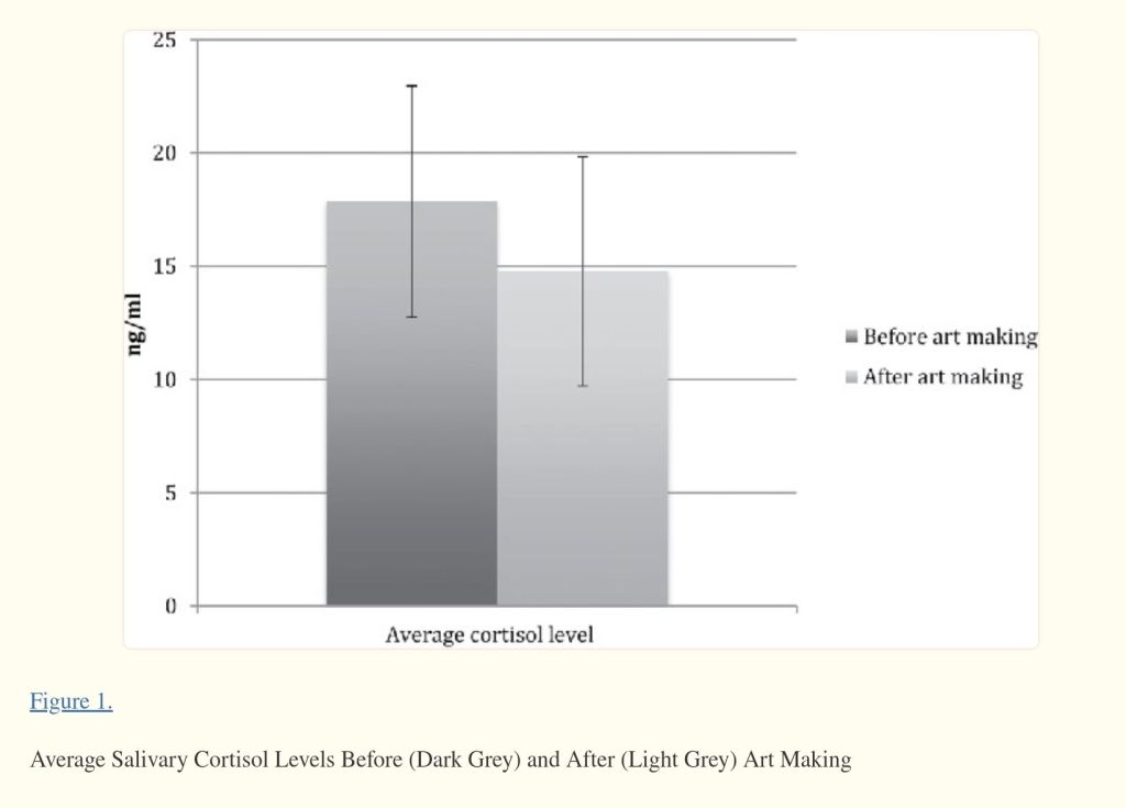 - Mengatasi Stres: Terlibat dalam aktivitas kreatif memberikan pengalihan dari stres dan kecemasan. Ini bisa berfungsi sebagai alat terapeutik, mendorong relaksasi dan kesehatan mental anak-anak. Salah satu studi* membuktikan bahwa dengan membuat karya seni (dalam bentuk apapun dengan media apapun) selama 45 menit dapat menurunkan level cortisol (hormon yang meningkat saat kadar stress tinggi) dalam tubuh.